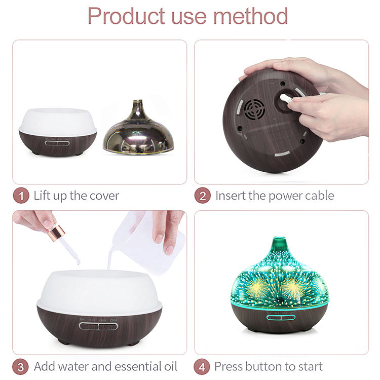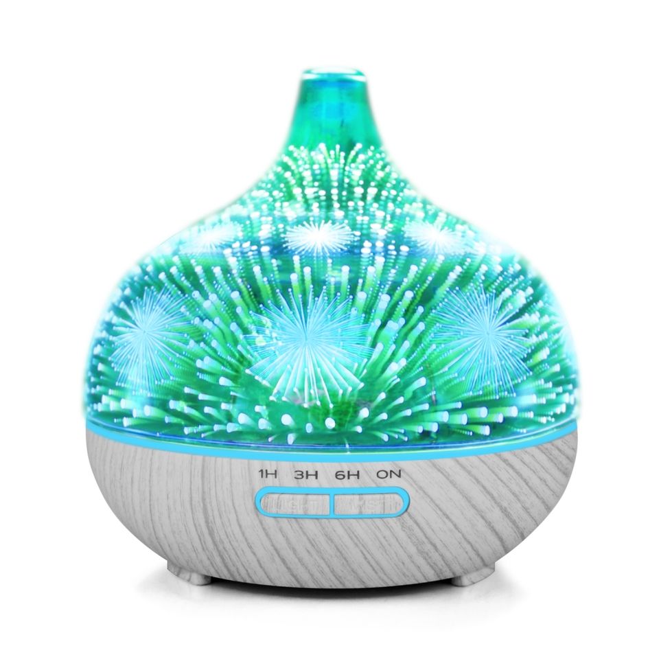 Ultrasons 3D feu d'artifice verre grande capacité mister vase forme humidificateur d'air diffuseur vase en verre avec lampe LED