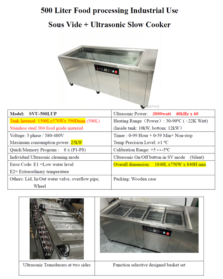 Machinery Function:Ultrasonic + Sous Vide cooking, Cleaning for food