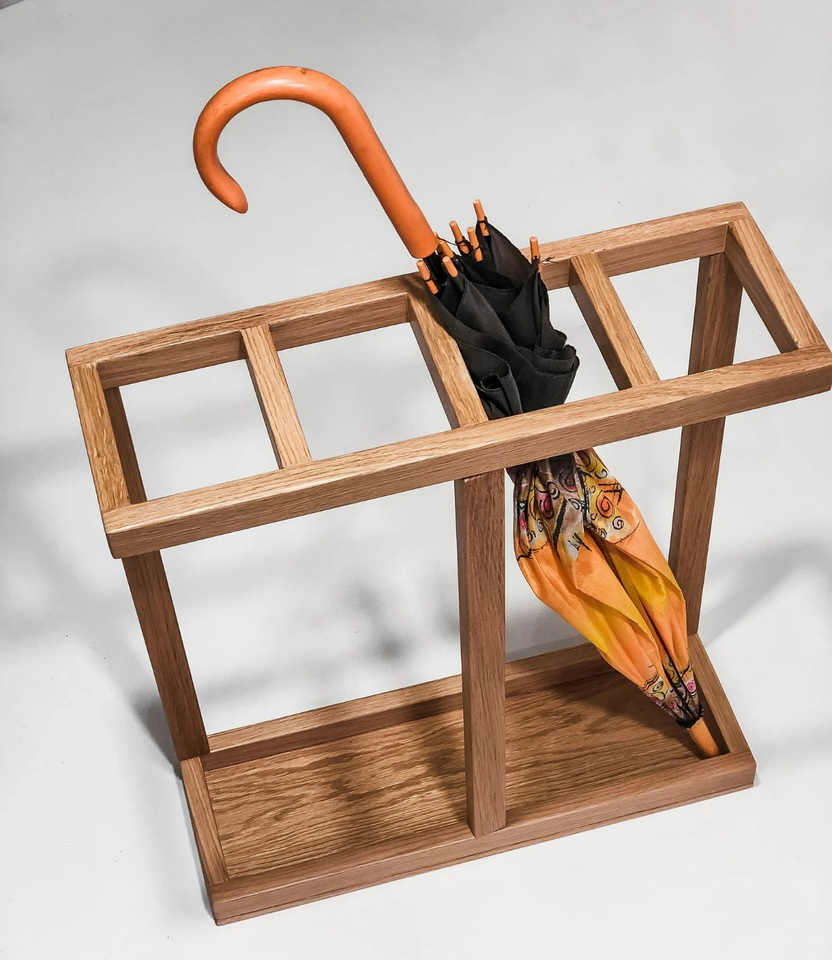 Porte-parapluies sur pied en bois pour entrée, support de rangement pour parapluies