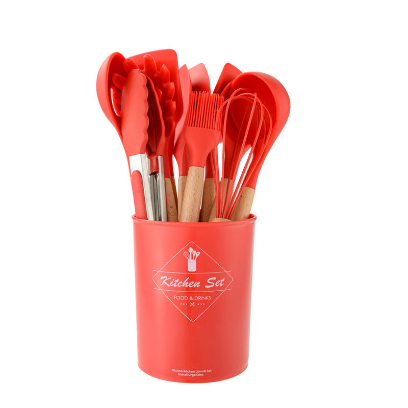 Umite Chef Cuisine Cuisine Ustensiles de cuisine en silicone antiadhésif avec support Poignée en bois Ensemble de cuisine en silicone