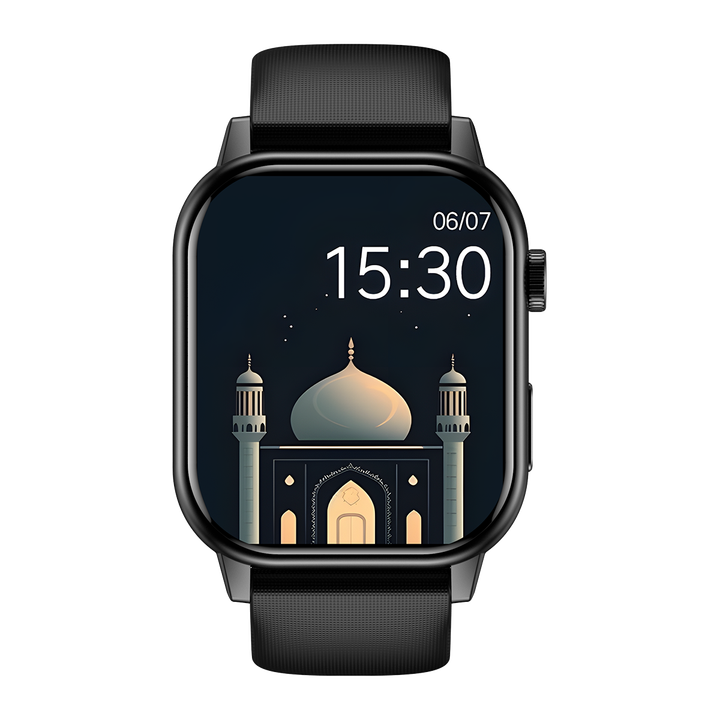 UmmahWatch Montre connectée musulmane haut de gamme Écran TFT Étanche IP67 Charge magnétique 140 versets du Coran 4 Go de RAM Haut-parleur