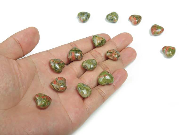 Unakite Agate Cristal Naturel Poli Coeur Chakra Palmier Pierre pour Amour Guérison Feng Shui Inspiré À La Main Coeur Cadeau Artisanat