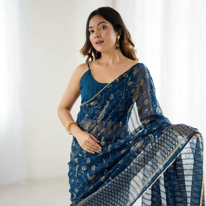 Prix imbattable pour une belle Georgette traditionnelle Saree bleu marine avec chemisier fantaisie fête ethnique mariage Festival porter des femmes