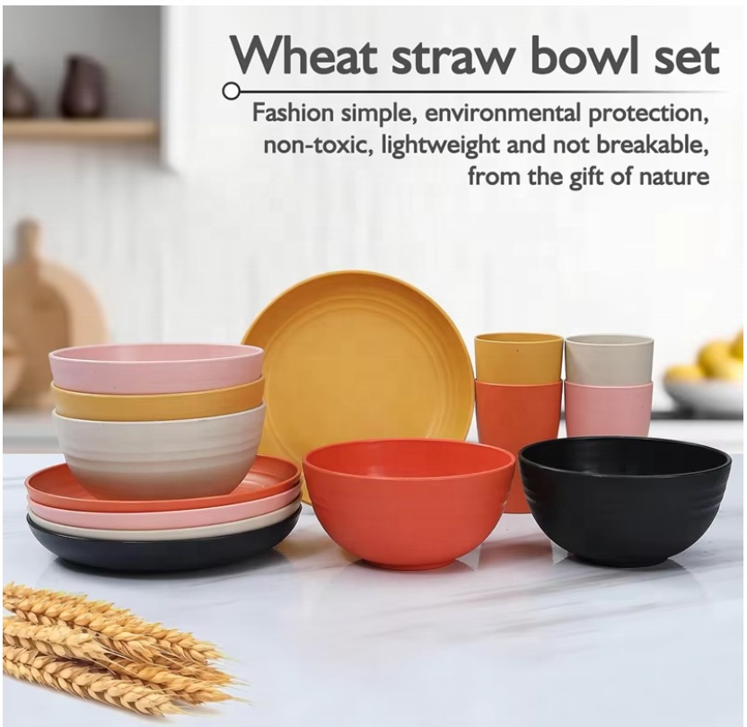 Ensemble de vaisselle incassable tasses de cuisine assiettes bols ensembles lave-vaisselle micro-ondes assiettes sécurité blé paille vaisselle ensembles 16 pièces