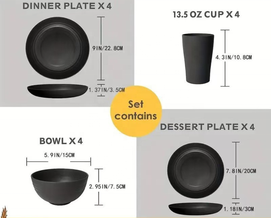Nom du produit:Service de table en paille de blé 16 pièces
