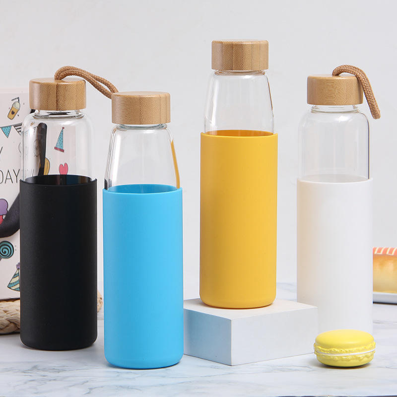Incassable Résistant À La Chaleur Logo Personnalisé Bouteille D'eau En Verre Avec Manchon En Silicone