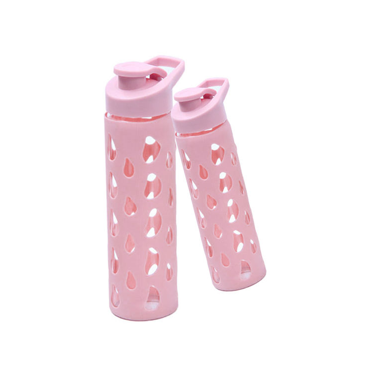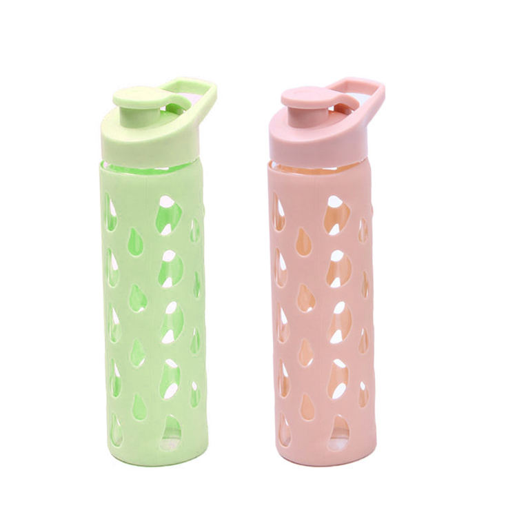 Bouteille d'eau de sport en verre transparent incassable de 500 ml avec étiquette privée, mélange de cristaux, avec manchon et bouchon en silicone