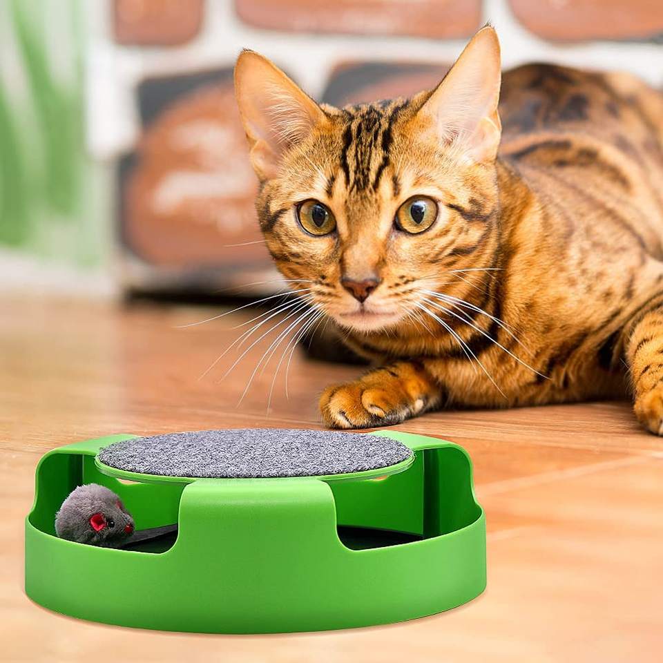 Uncatchable Spinning Mice Cat Scratcher Catnip Puzzle Toy Interactive Motorized Mouse House Cat Toy: color box
