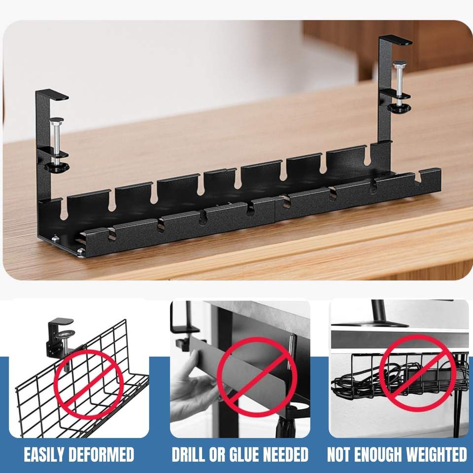 Caractéristique:Clamp-on sous le chemin de câbles de bureau aucune perceuse pour la gestion de fil