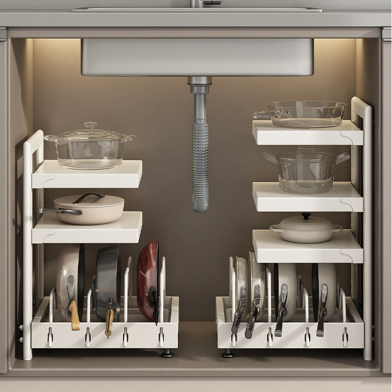 Organisateur sous l'évier, étagère de rangement pour armoire de cuisine, tiroir coulissant multi-niveaux pour casseroles, poêles, planche à découper, réglable