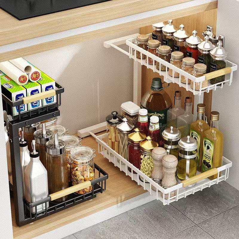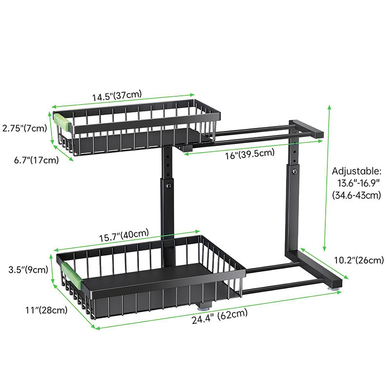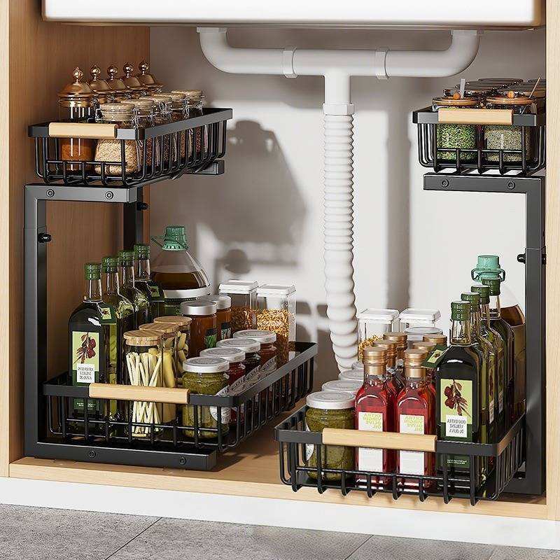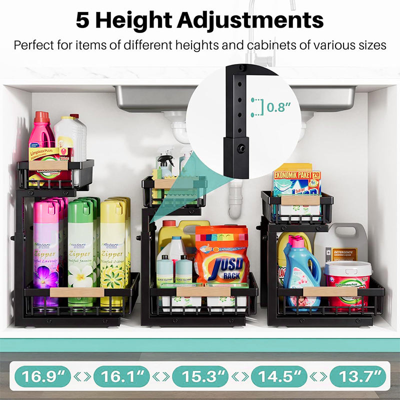 Organiseurs et rangements sous l'évier, panier coulissant à 2 niveaux, étagère sous l'évier réglable en hauteur