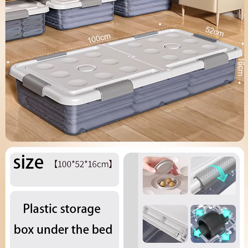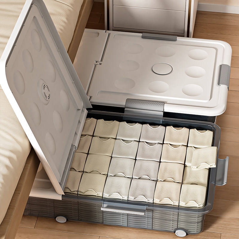 Boîte de rangement sous le lit en plastique PP moulé par injection, 160L, étanche, avec roulettes plates, organiseur de vêtements