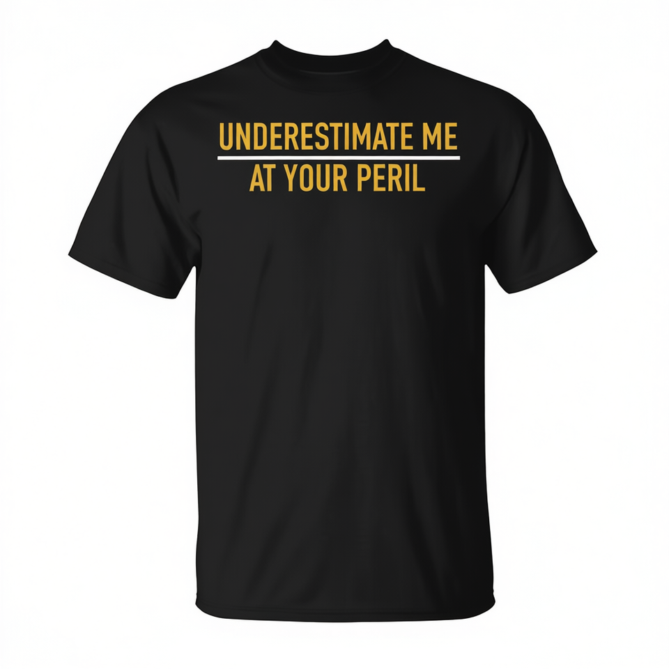 T-shirt « Underestimate Me At Your Peril » noir pour homme, col rond, manches courtes, coupe premium, chemise affirmant la confiance