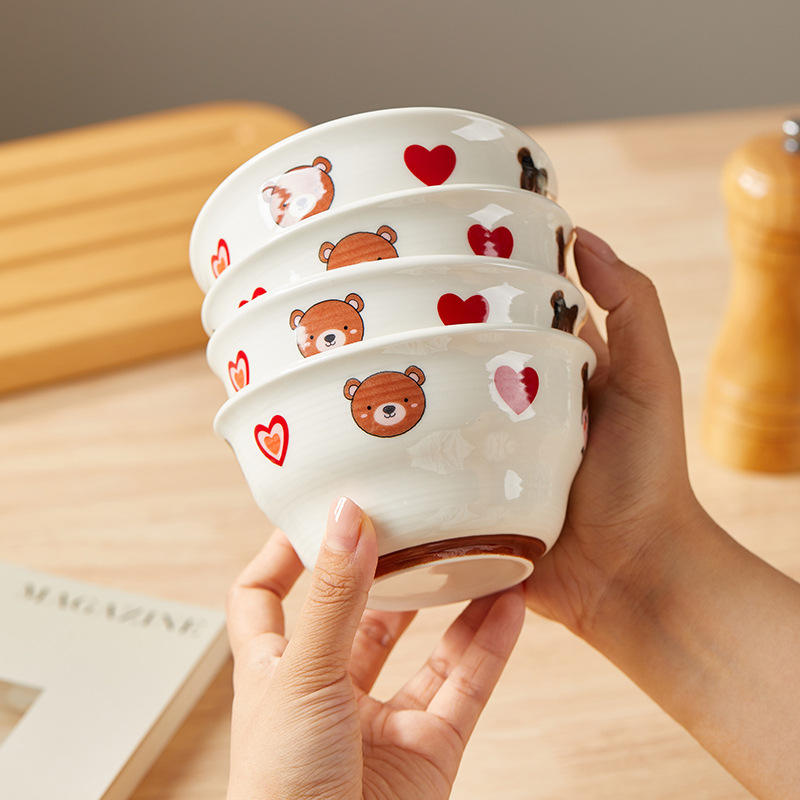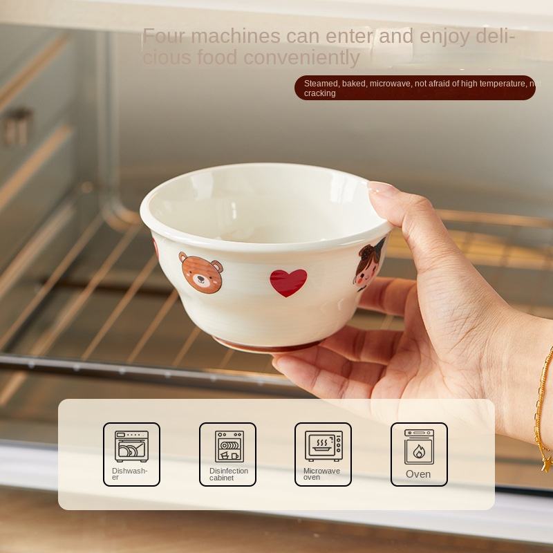 Bol à riz en porcelaine sous glaçure, compatible micro-ondes, pour la maison, Festival de l'Amitié, Nouveauté 2025, design créatif, motif dessin animé, esthétique et de grande valeur