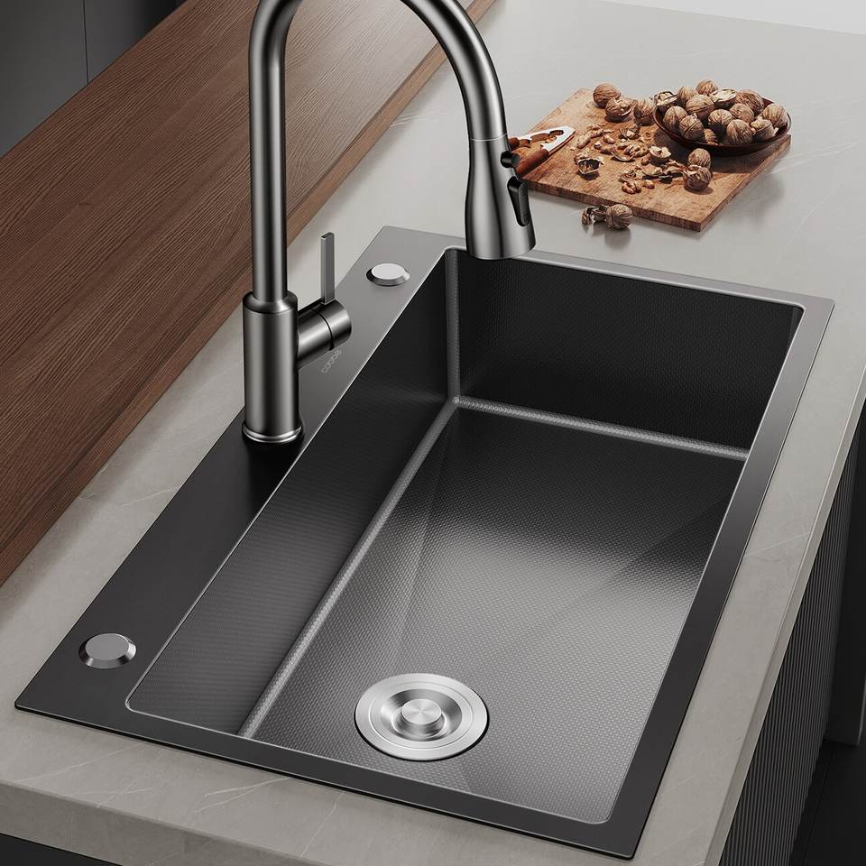 Évier de cuisine encastré artisanal en acier inoxydable 304 épaissi, grande cuve unique, pour cuisine nano