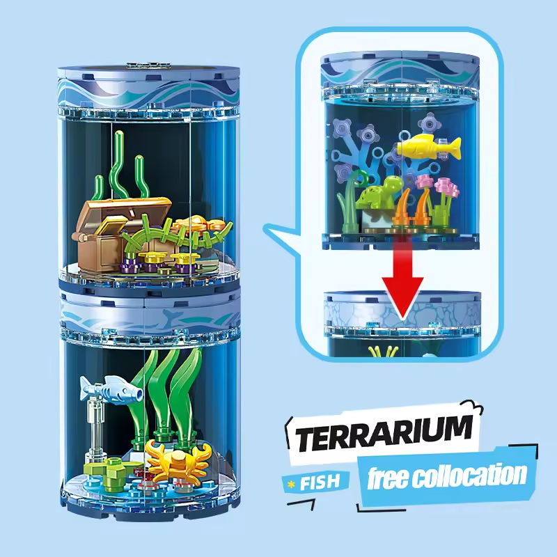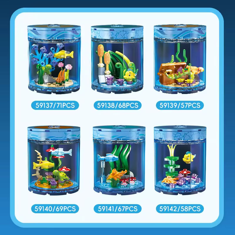Ensemble de blocs de construction Série Sous-Marin avec Lumières, Modèle Monde Sous-Marin, Blocs de Construction DIY pour Aquarium, Jouets