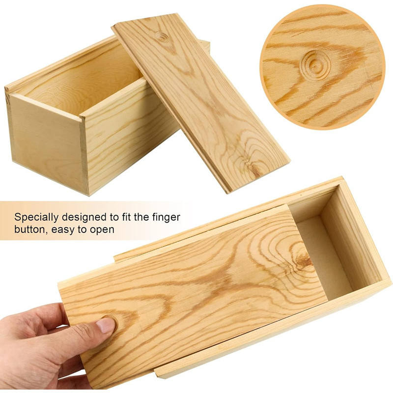 Boîte de rangement en bois naturel inachevé pour bricolage artisanat pour étui à bijoux maison décor de noël fête de mariage stockage Photo autocollant