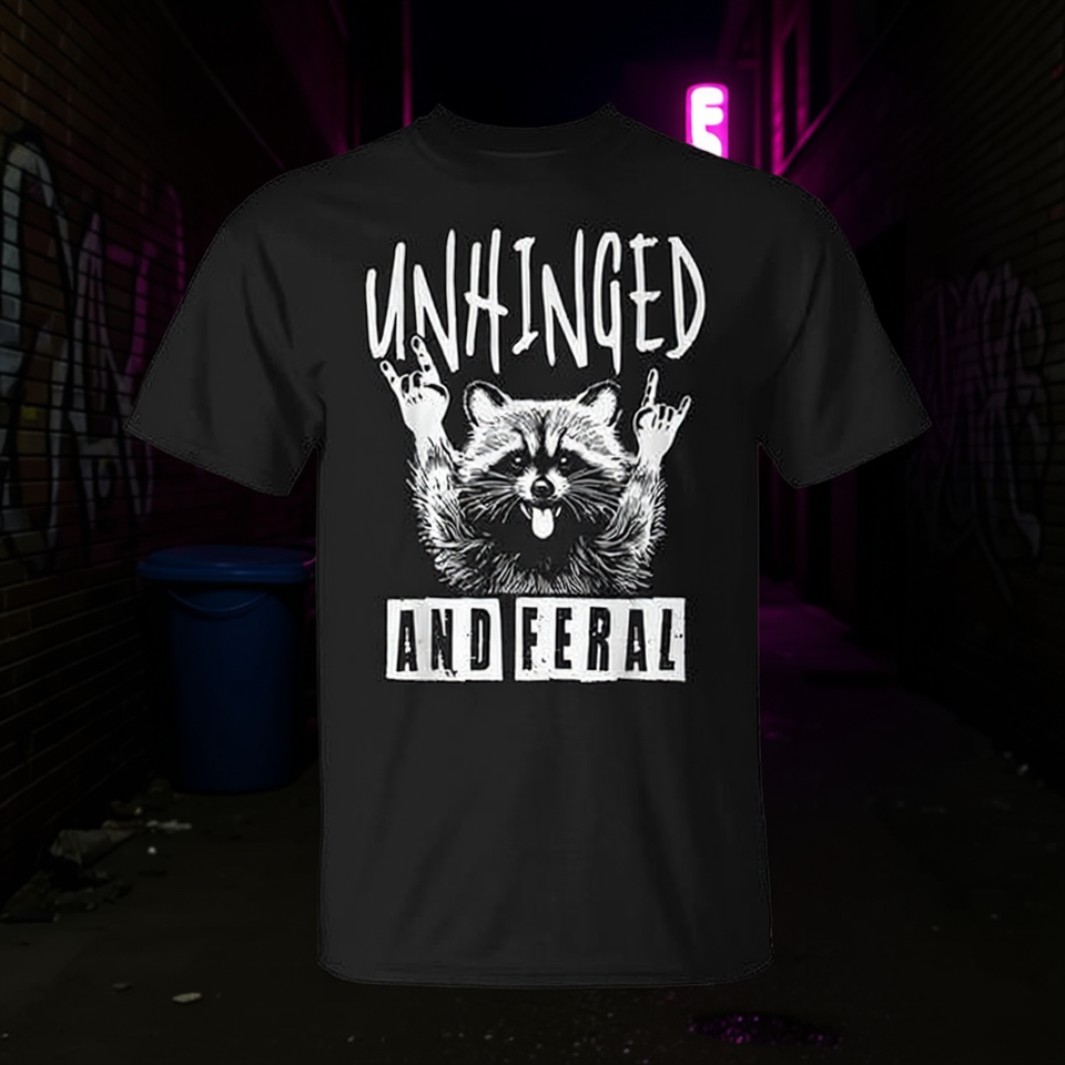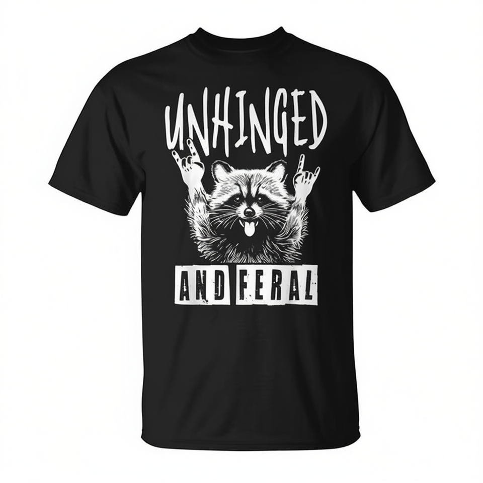 T-shirt Rétro Décalé avec Meme Raton Laveur et Chat de Rue – Design Promotionnel Élégant avec Image de Raton Laveur Sauvage