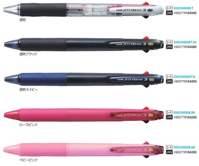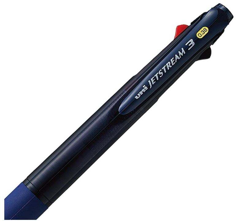 Stylo à bille multi-couleurs Uni Jetstream en plastique, encre à très faible friction de 0,38 mm, pointe à ressort, technologie anti-fuite (SXE3-400-38)