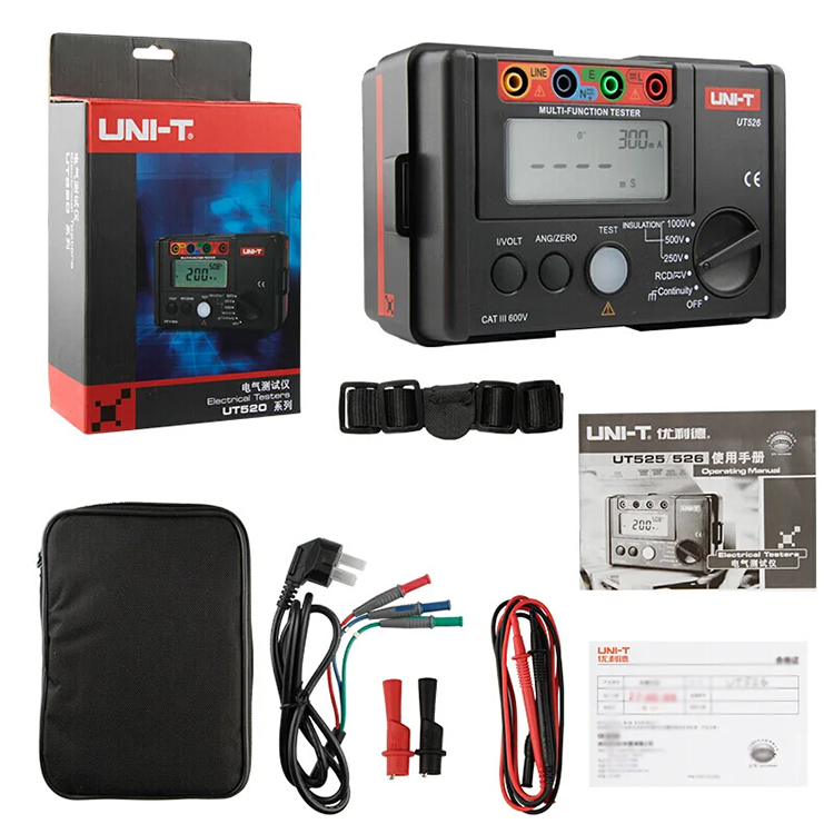 Testeur numérique multifonction Uni-t Ut526, testeur d'isolation électrique, testeur de résistance de terre Ut526 + testeur RCD