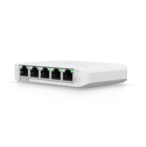 UniFi USW-Flex-Mini Switch Gigabit Géré 5 Ports PoE Alimentation USB-C Compact Switch Réseau Couche 2 pour Domicile, Bureau et Petites Entreprises