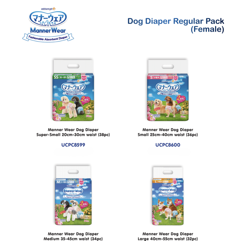 Couche absorbante pour chien Unicharm Pet Fashionable - MannerWear - (F) Super Small 38 pièces
