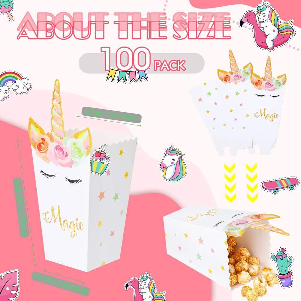 Licorne Anniversaire Thème Baby Shower Party Deco Popcorn Box Licorne Popcorn Boxes pour Candy Cookie Containers and Gift Use