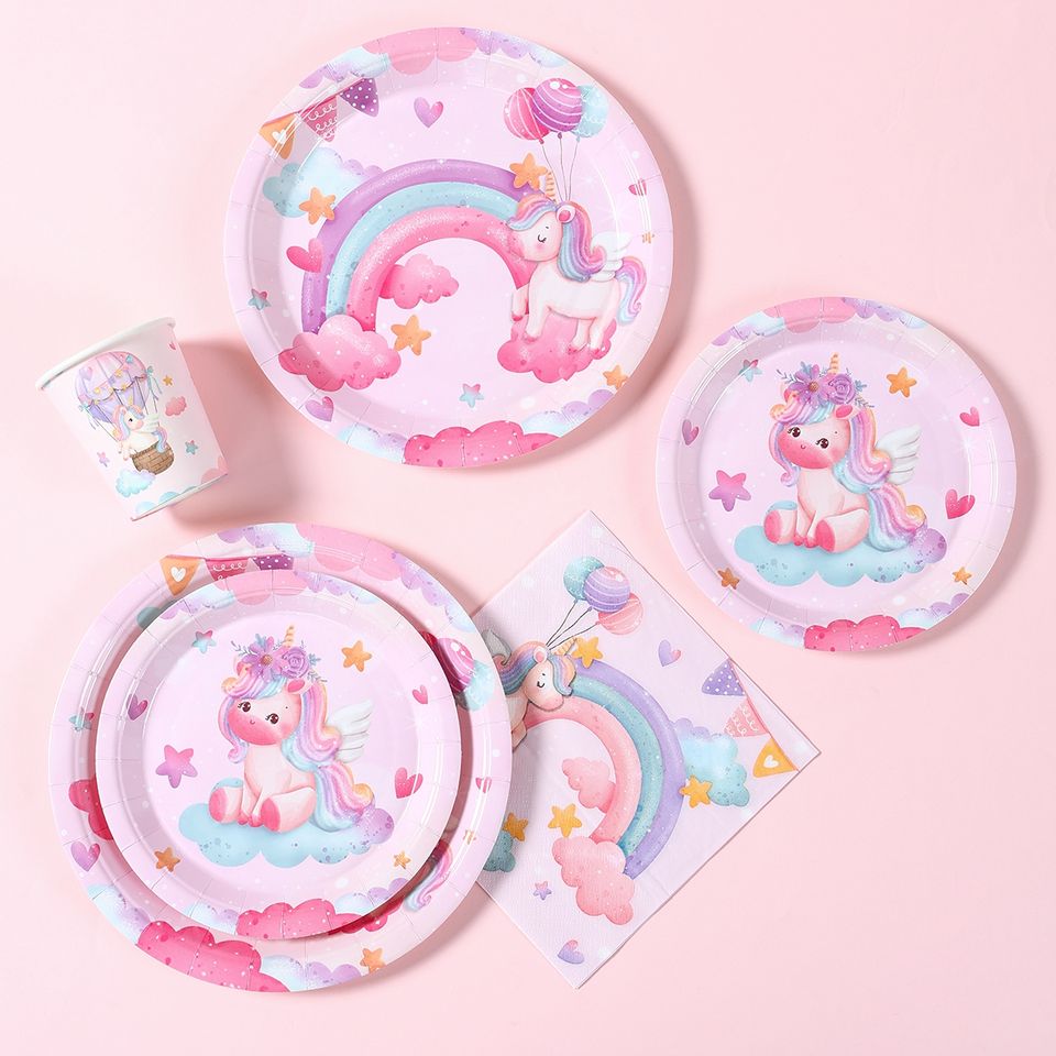 Ensemble de vaisselle jetable licorne assiettes et serviettes en papier pour décorations d'anniversaire de douche de bébé kit de vaisselle de fête