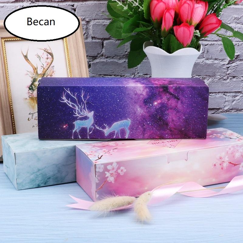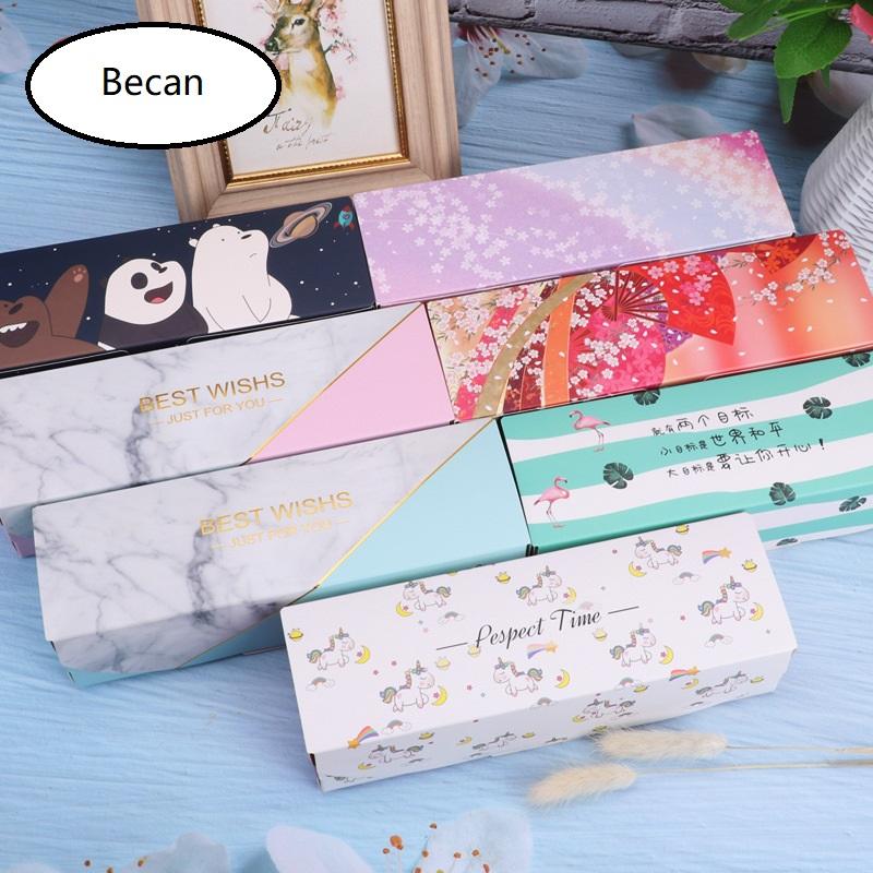Boîte personnalisée de style esthétique licorne pour pâtisseries, en matériaux recyclés, avec pelliculage mat et gaufrage pour emballage alimentaire et bonbons