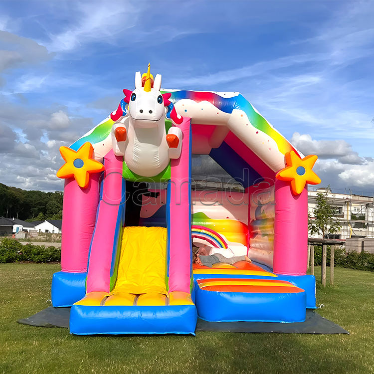 Château gonflable licorne princesse avec toboggan pour événements