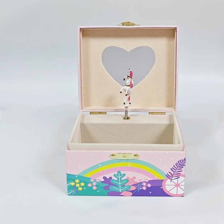 Boîte à musique licorne boîte à bijoux emballage pour filles et garçons cadeau ballerine boîte à bijoux musicale en bois jouets pour enfants manivelle