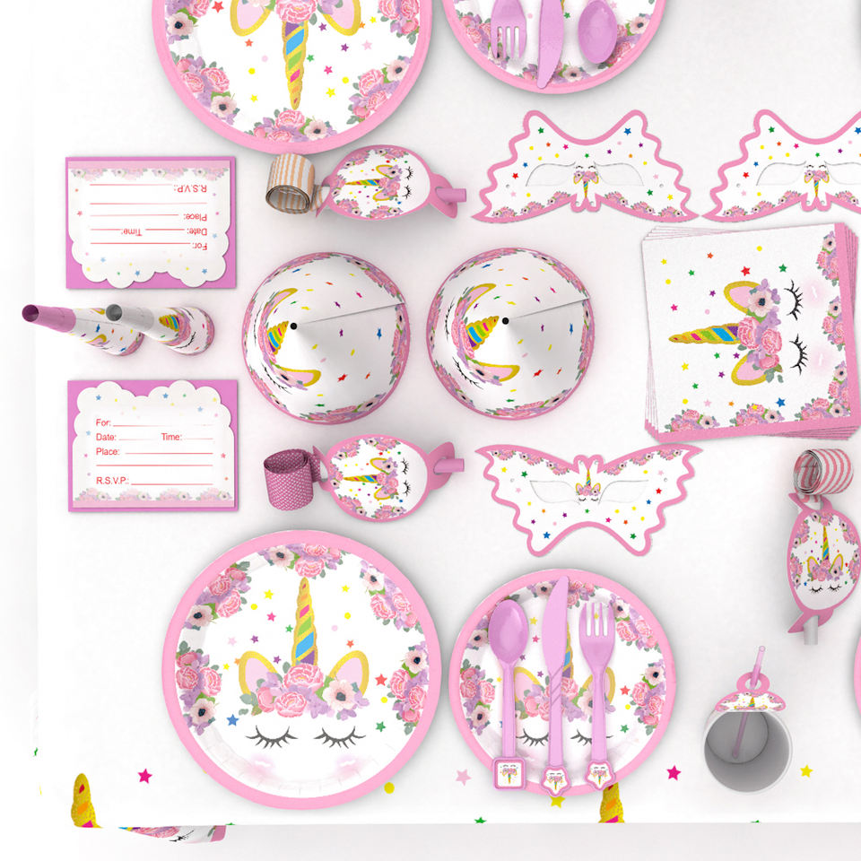 Fournitures de fête licorne Pack vaisselle jetable et ensembles de décoration de fête d'anniversaire