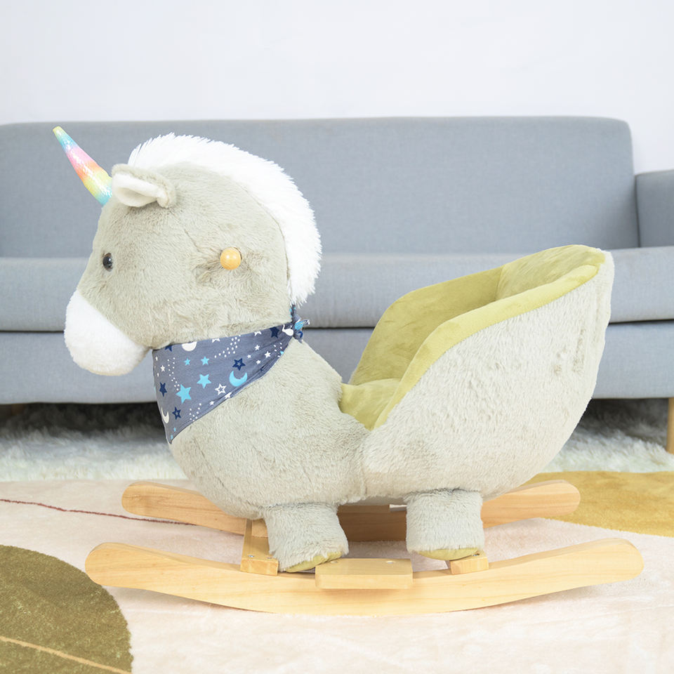 Cheval à bascule licorne en bois pour enfants, jouet en peluche à chevaucher