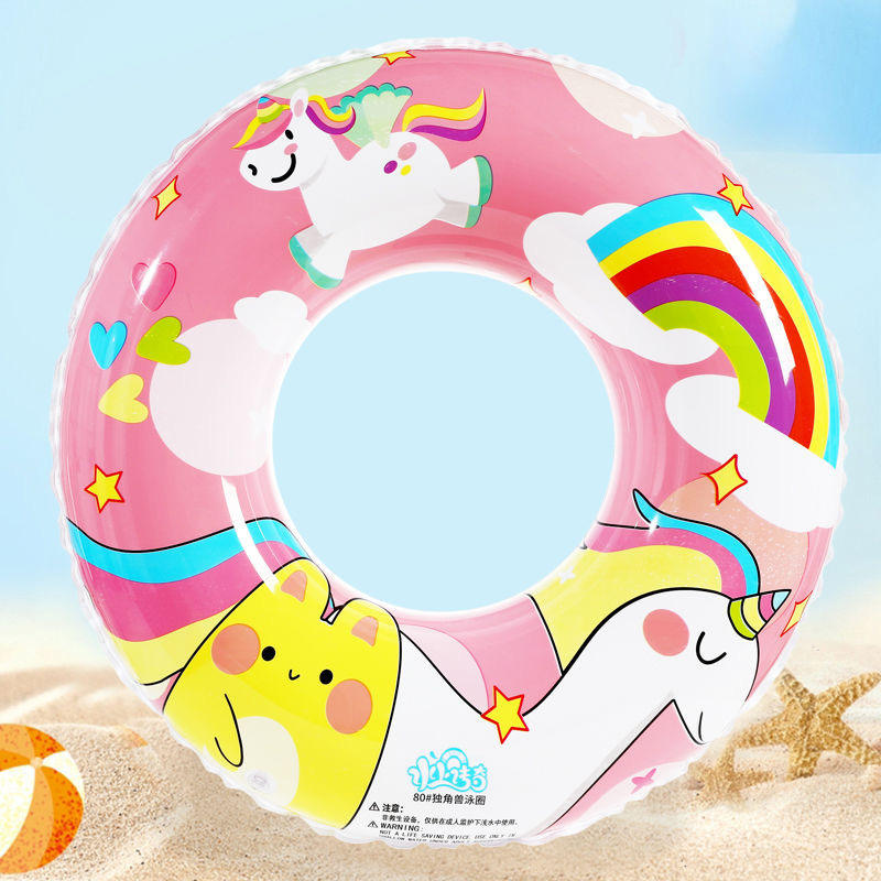 Bouée de natation licorne 70 cm, gonflable, pour enfants, design cartoon, forme ronde, matière PVC