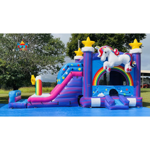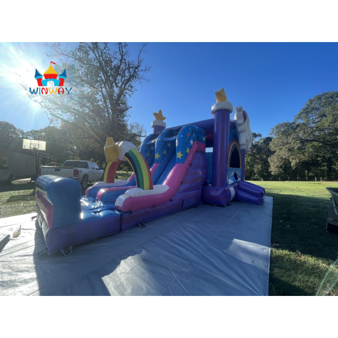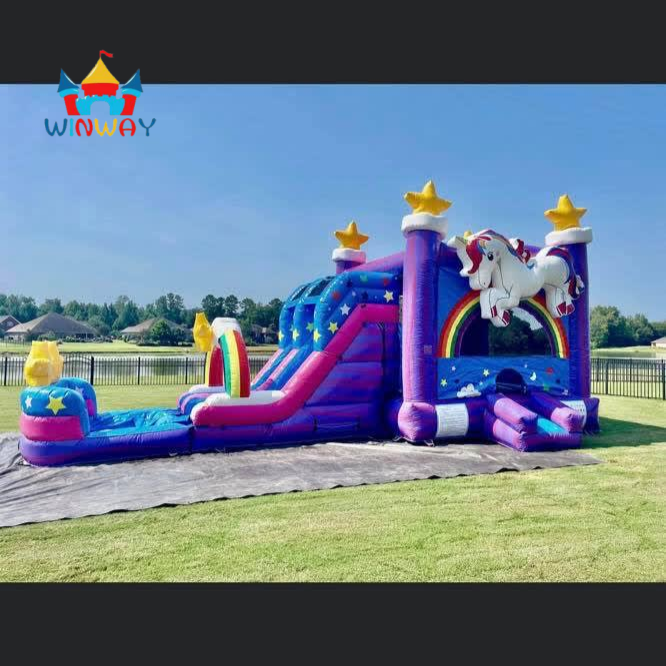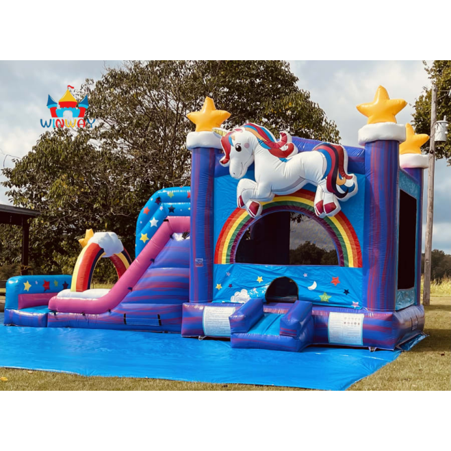 Winway Maison gonflable en PVC sur le thème de la licorne et des étoiles avec toboggan | Design coloré d'étoiles et d'arc-en-ciel Capacité de 500kg