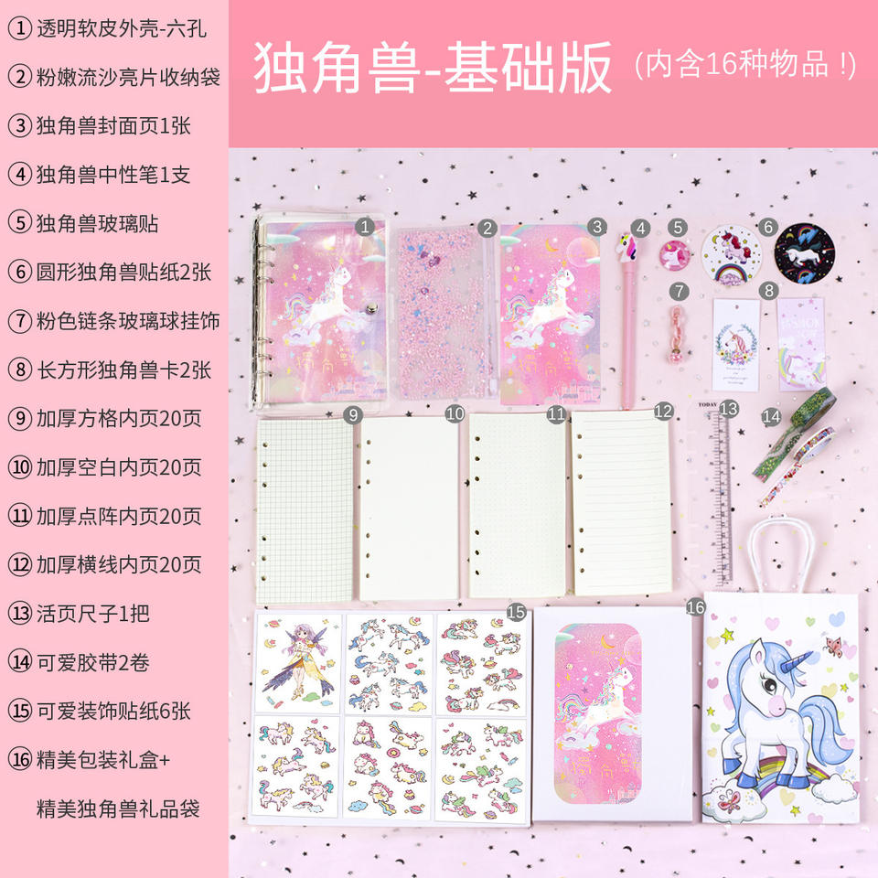 Cahier sur le thème de la licorne Poches à glissière Paillettes en PVC Enveloppes budgétaires Relié en spirale A5 Tissu PP Selle Couture Couleur Autocollants