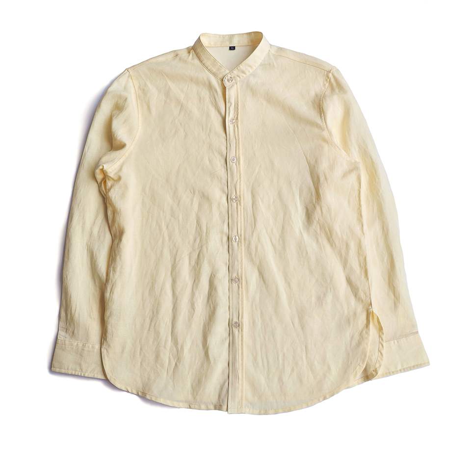 Chemise homme Unie Color Button Lin 2025 été, col montant, manches longues, coupe ajustée, en mélange de coton, écologique, décontractée, ODM