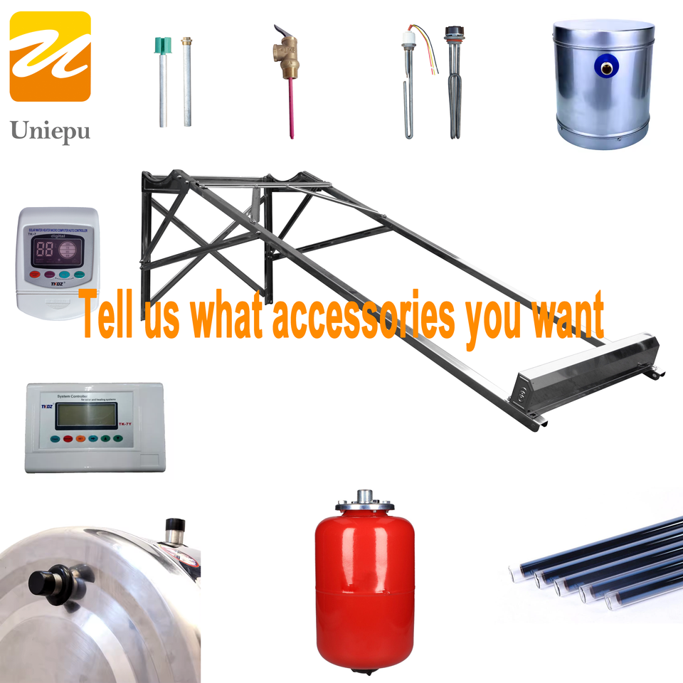 Chauffe-eau solaire à tube sous vide Uniepu sans pression pour usage extérieur et domestique, haute efficacité, acier inoxydable 100L-300L
