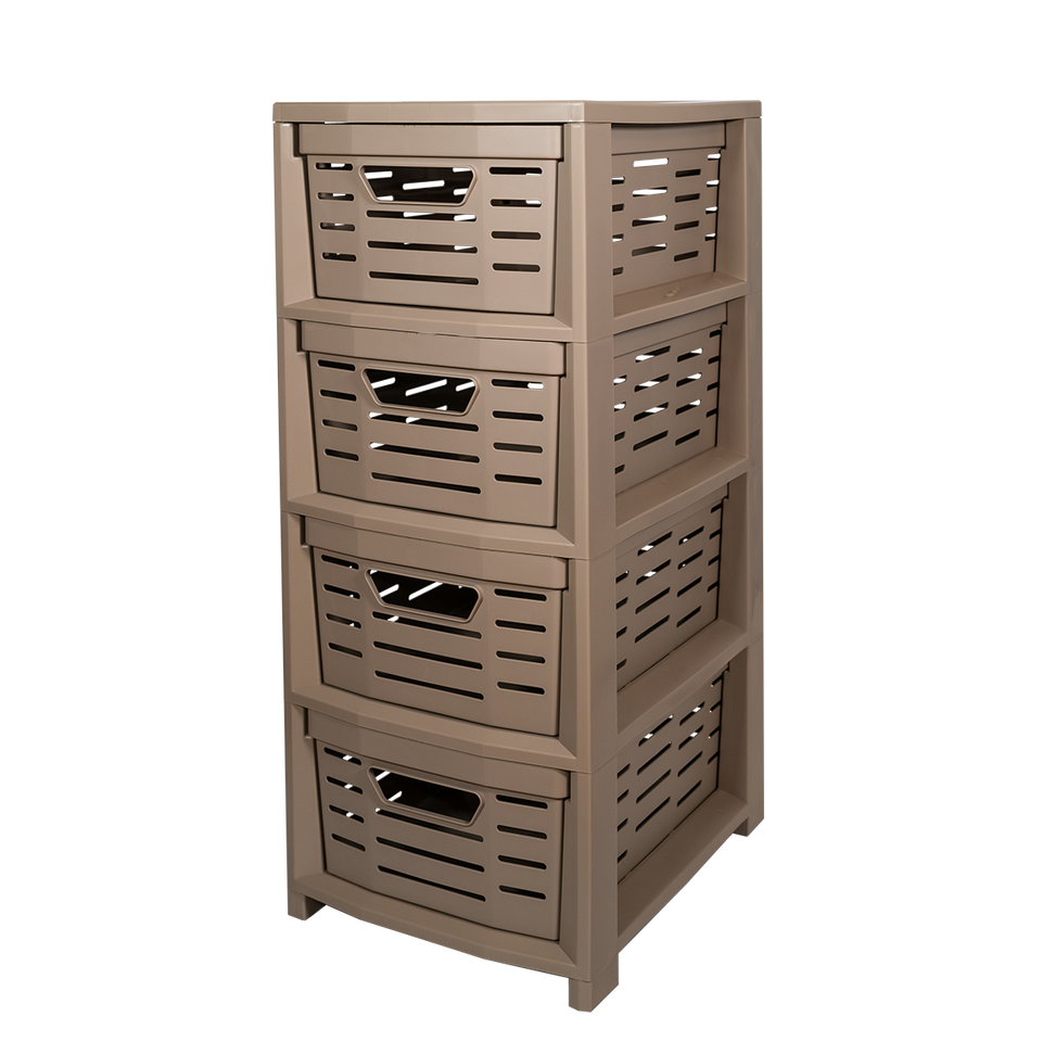 Chariot de rangement multifonctionnel empilable Uniko Minimalist en PP, 4 tiroirs, moulé par injection, couleur taupe, 365x285x675mm