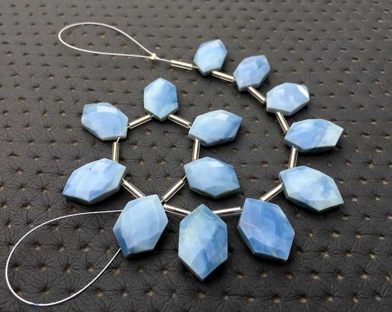 Perles de Briolette à facettes uniques, 13 pièces, forme fantaisie, brin de qualité supérieure, opale bleue naturelle, pierre précieuse, vente en gros