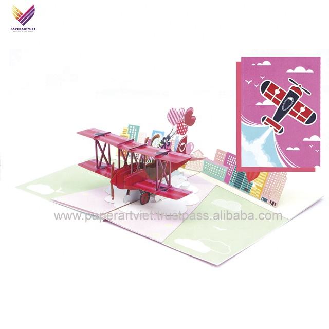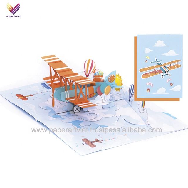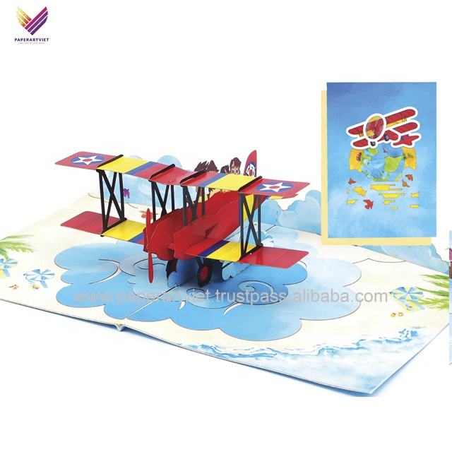 Carte de vœux artisanale unique en forme d'avion, carte pop-up, anniversaire, Noël