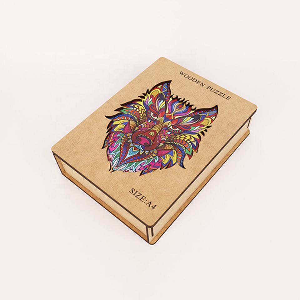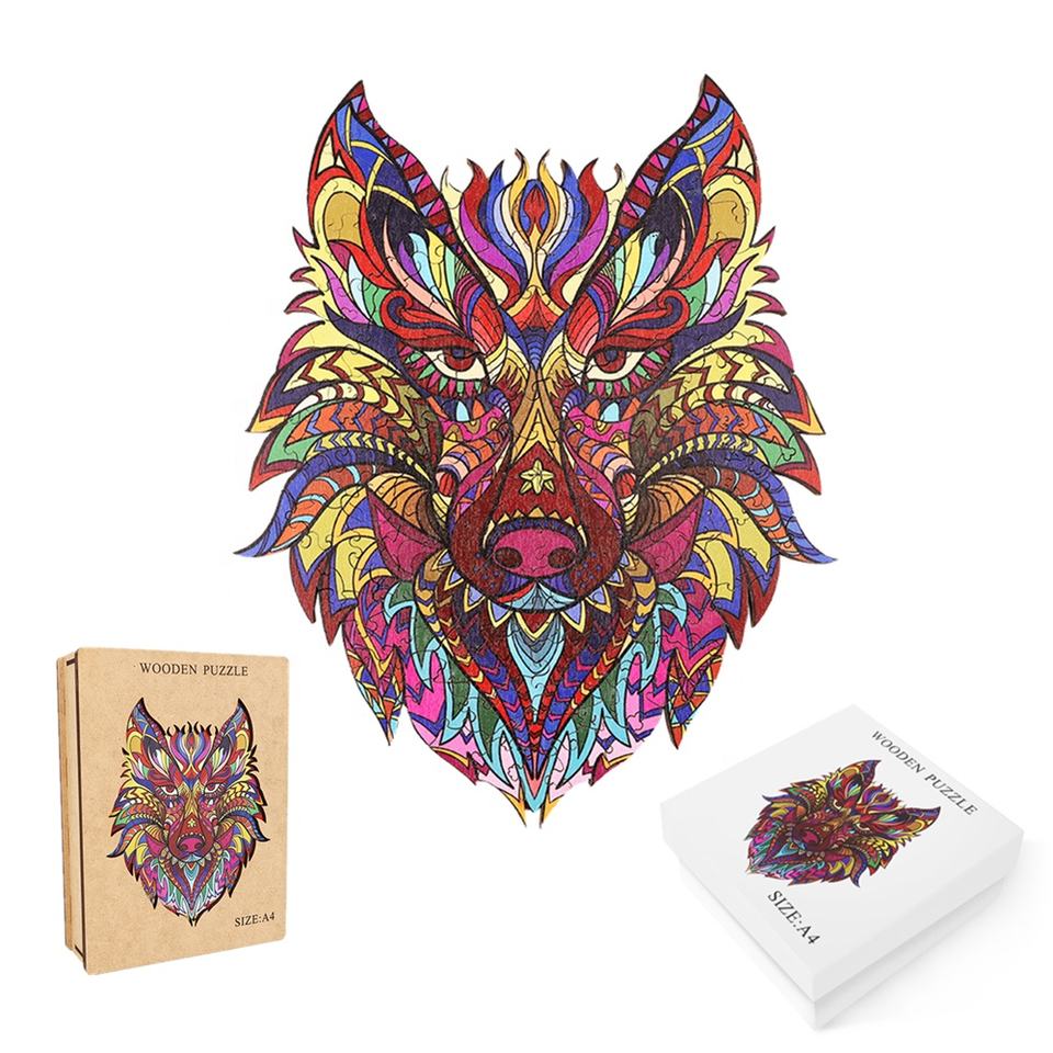 Pièces de puzzle uniques en forme de loup animal A5 A4 A3 Puzzle en bois pour adultes et enfants Cadeau d'anniversaire de Noël Motif personnalisé