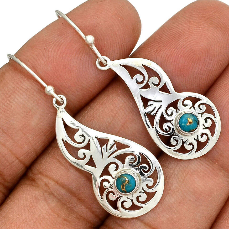 Keyword:925 Sterling Silver Copper Blue Turquoise Earring