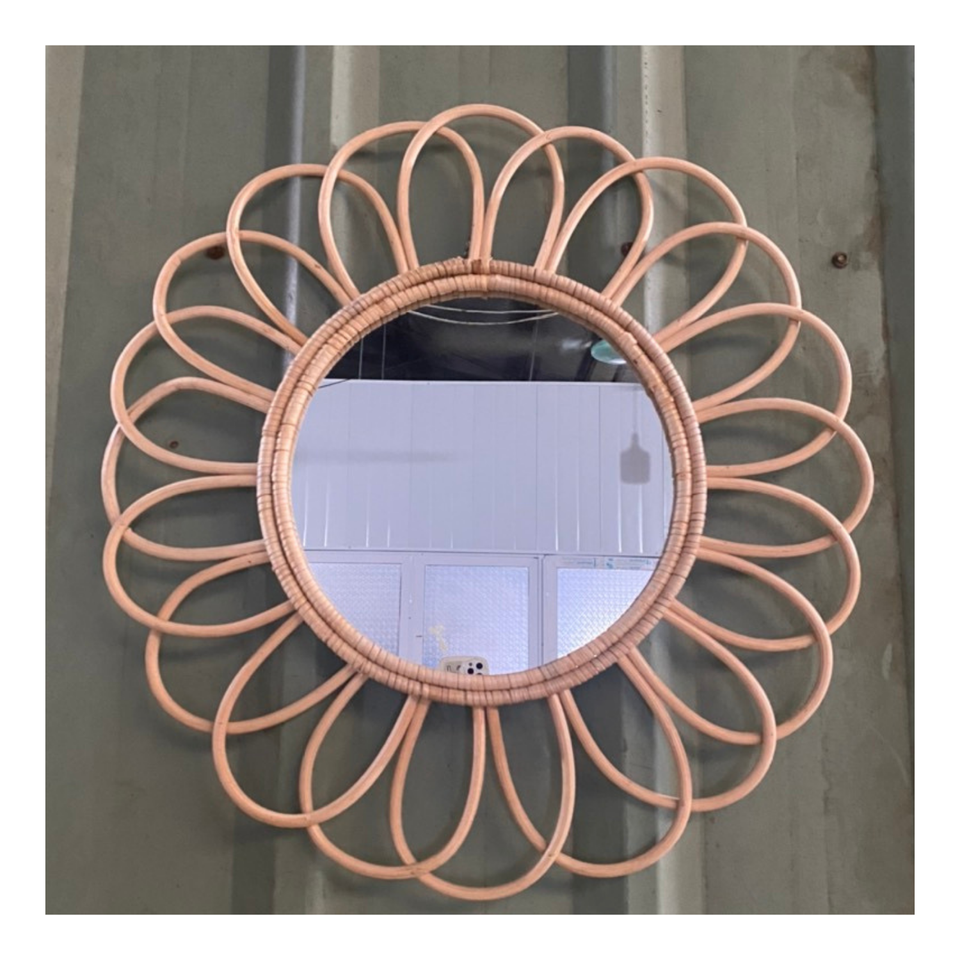 Unique Artistic Rattan Wall Mirror Round Shape Bohemian Decorative Mirror for Living Room Wall, Bedroom and Cafe Decor