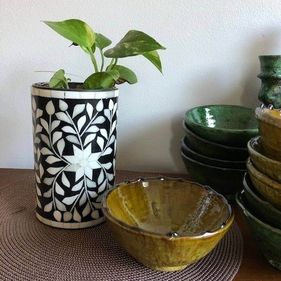 Vase floral en incrustation d'os unique décoration de maison de couleur noir et blanc pour une taille personnalisée et un emballage d'une seule pièce