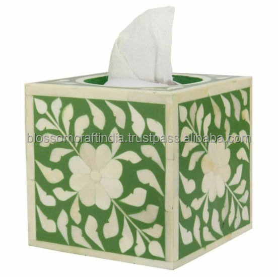 Boîte à mouchoirs unique en os incrusté, support décoratif en bois, cadeau de luxe fait main, élégant accent pour la décoration intérieure moderne