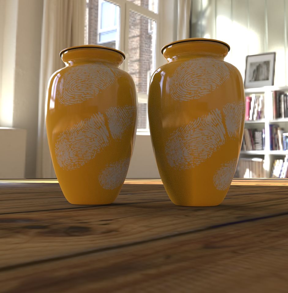 Urne funéraire unique marron avec un motif légèrement tacheté.