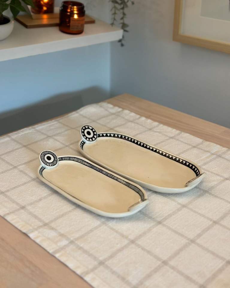 Plateau de service en céramique unique conçu pour le festival avec une présentation élégante de friandises sucrées et salées