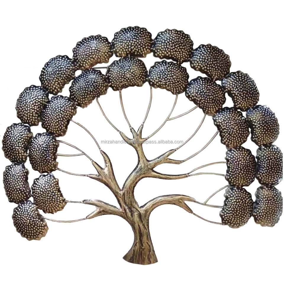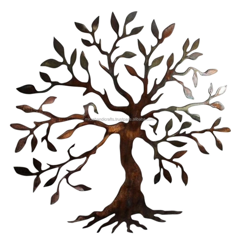 Décoration murale arbre de vie marron décorative en métal à collectionner unique et sculpture d'art montée à suspendre Cadeaux Diwali Décoration intérieure