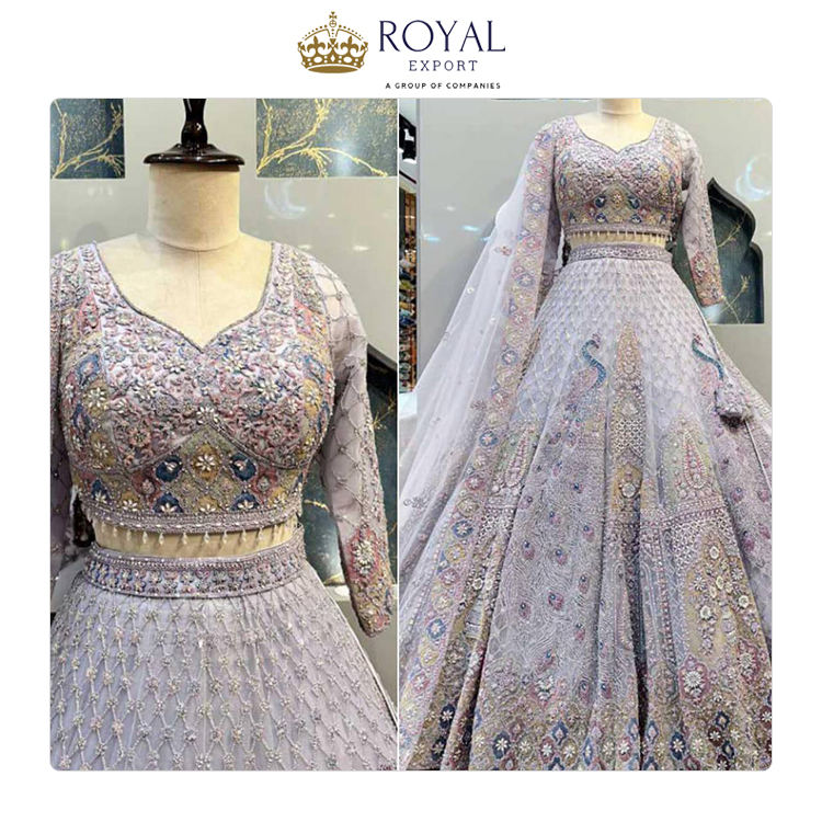 Collection unique des derniers créateurs de mode Lehenga Choli de mariage semi-cousu en filet souple de qualité supérieure pour femme